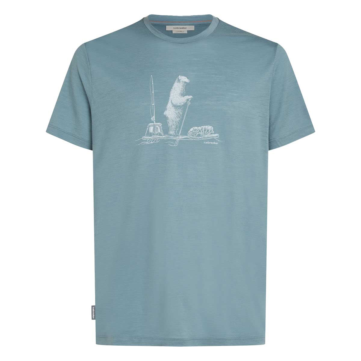 Dieses vielseitige technisches Merino T-Shirt bietet Komfort, Atmungsaktivität und Geruchsneutralität für Abenteuer in allen vier Jahreszeiten, das Merino 150 Tech Lite T-Shirt Polar Paddle bietet die natürliche Performance von 100% Merinowolle. Der Originalprint zeigt einen paddelnden Eisbären, der auf der Suche nach dem perfekten Campingplatz ist.