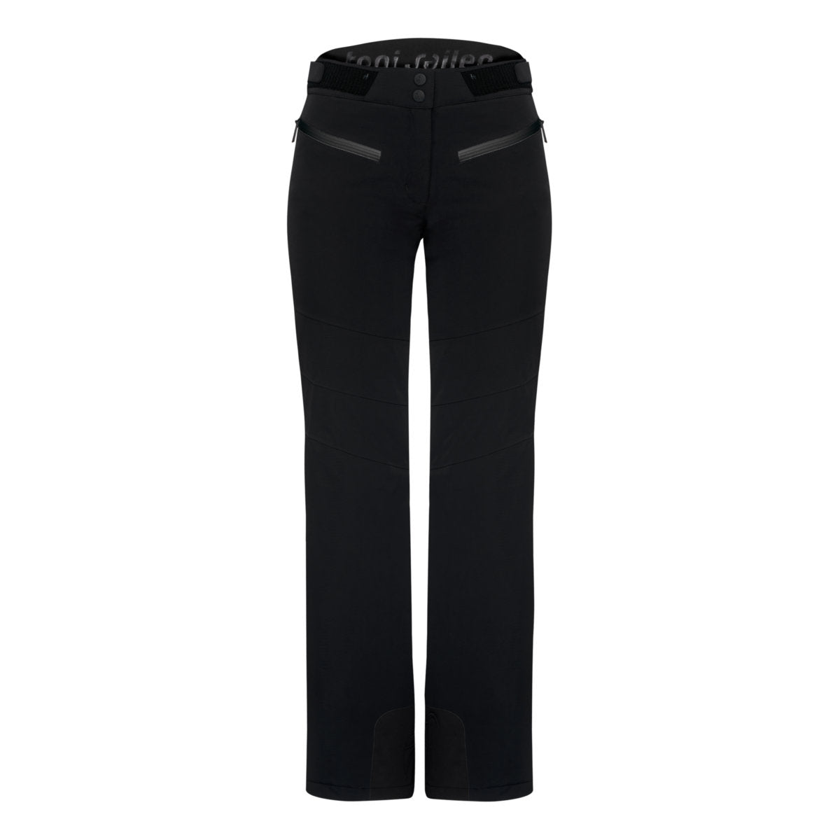 Die technische und komplett wasserdichte Damen Skihose AMIS beeindruckt mit perfekter Passform und maximaler Bewegungsfreiheit. Der japanische Premium 4-way Stretch dehnt sich mühelos in alle Richtungen, ebenso wie die PU-Membran, die zusätzlichen Schutz vor Feuchtigkeit bietet. Der höher geschnittene Bund im Rückenbereich wärmt optimal die Nieren, während die YKK® AquaGuard®-Reißverschlüsse die beiden Taschen zuverlässig gegen Wasser abdichten. Feine Details der Skihose umfassen das geformte Toni Sailer Gams Logo am Kantenschutz.